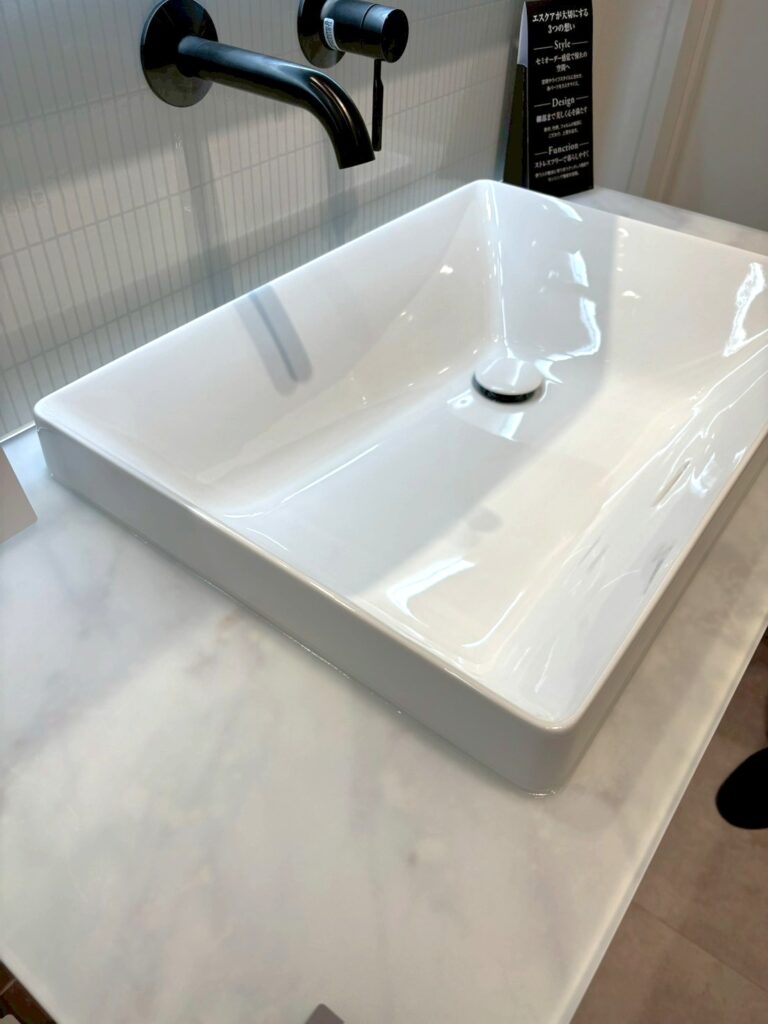TOTOの洗面台『エクスアシリーズ』はホテルライクなお洒落なデザイン性になってます。