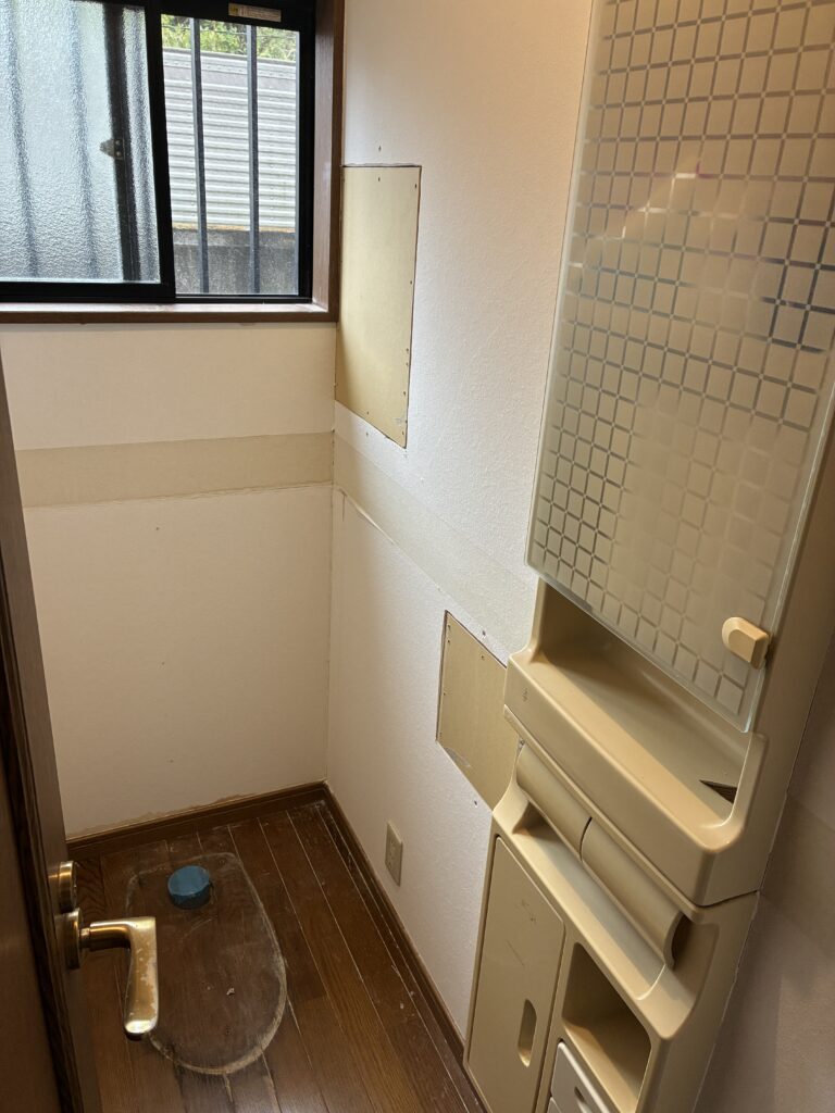 引っ張ったり体重を掛けたりすることが多いため、しっかりと固定できるように下地工事も実施しました。特に棚付きのペーパーホルダーは手をつくこともあるので安心して使えるように下地工事は大切です!