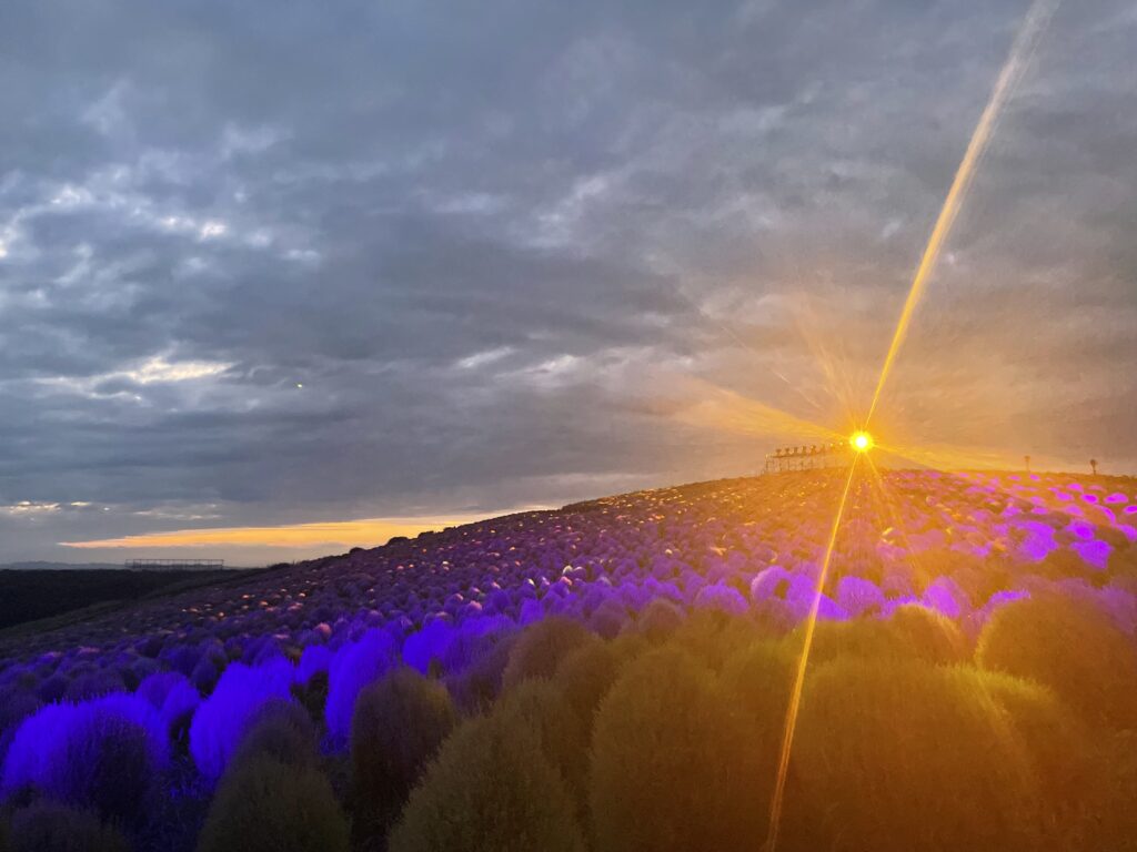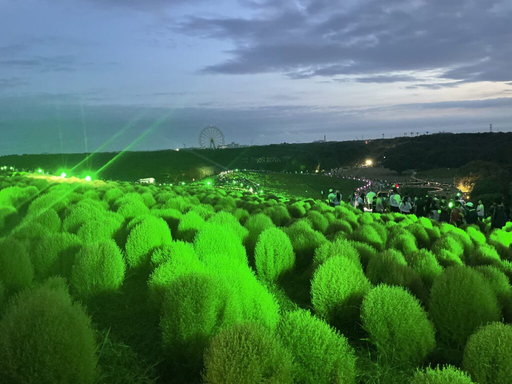 ネモフィラが世界的に有名な「みはらしの丘」ですが、今回は夏の太陽を浴び大きく成長したコキアに、光と音楽の演出でカラフルに彩られていました!
