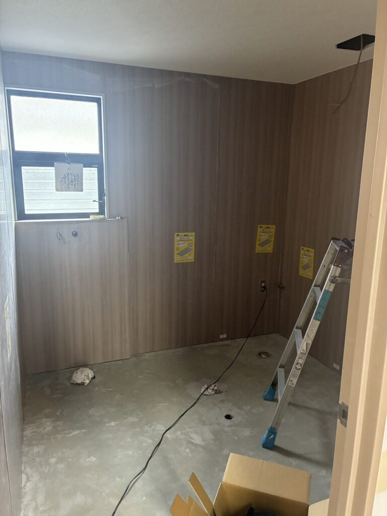 前回工事していた間仕切り壁の作業は