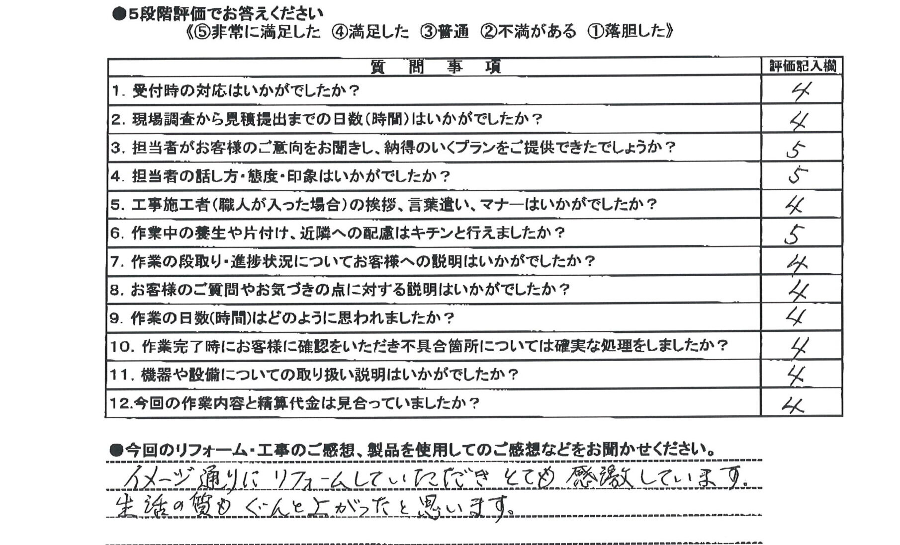 イメージ通りにリフォームしていただきとても感激しています。生活の質もぐんと上がったと思います。