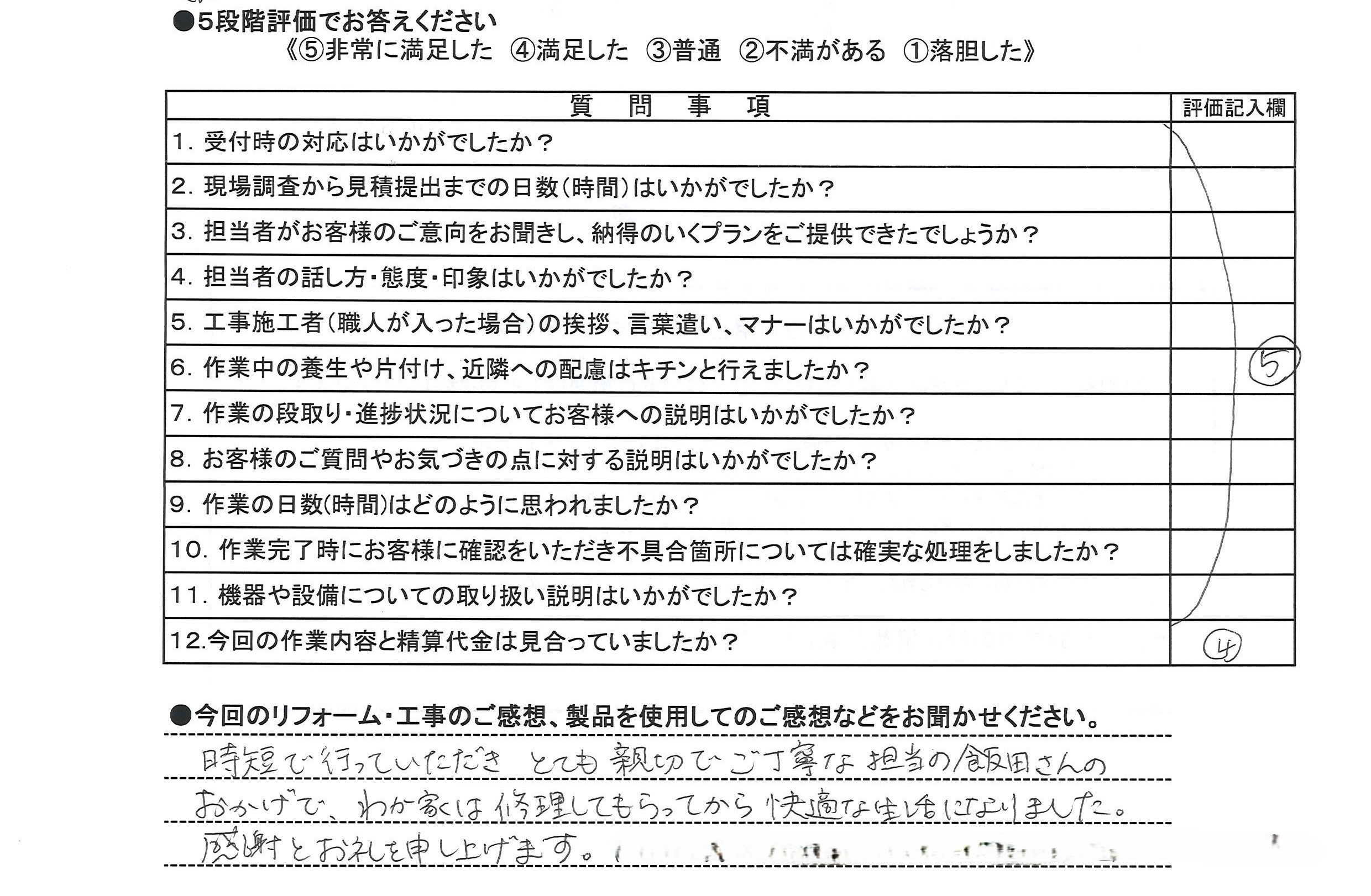 時短で行っていただきとても親切でご丁寧な担当の飯田さんのおかげで、わが家は修理してもらってから快適な生活になりました。感謝とお礼を申し上げます。